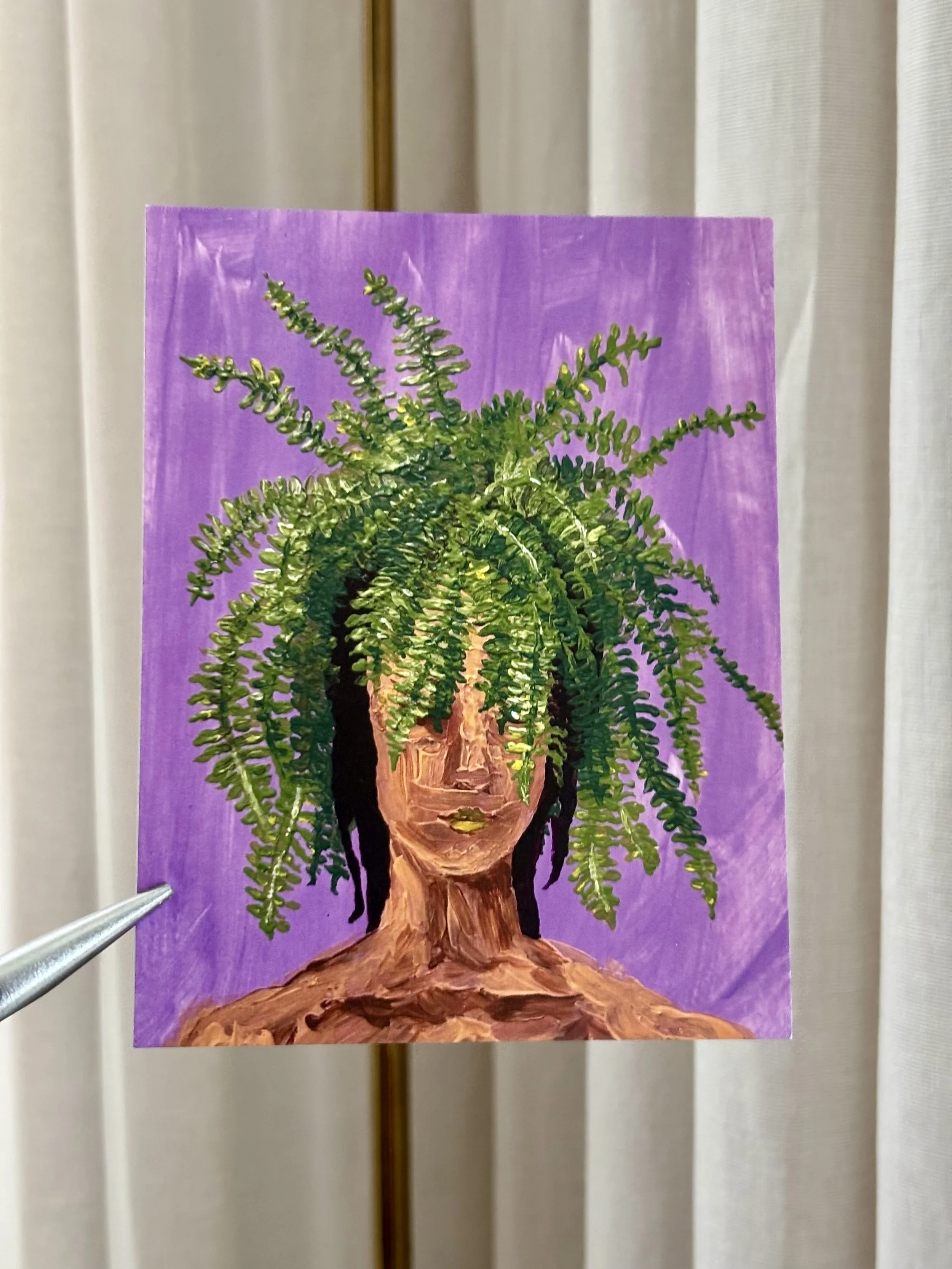 Saniaishahmo on saanut inspiraationsa Porkkalan metsistä. Puiden siimeksissä löytyy niin tuuheita saniaisryppäitä, että ne näyttävät aivan peruukeilta.